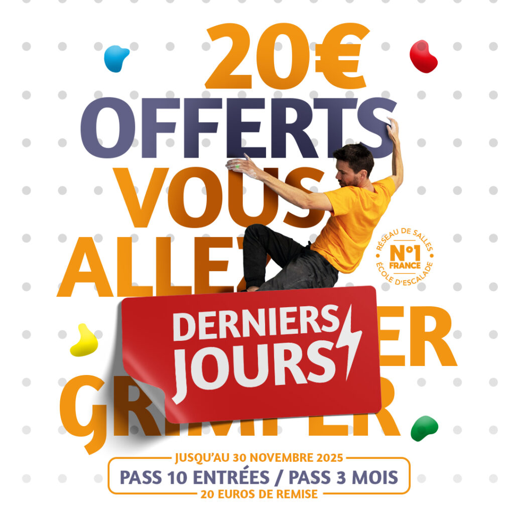 Envie de bouger à ton rythme, de te (re)mettre à l’escalade ou simplement de partager une activité fun avec tes proches ?C’est le moment parfait pour grimper ! 🔥 Le concept est simple :👉 -20 € sur les cartes 10 entrées👉 -20 € sur les pass 3 mois👉 Résultat : plus de grimpe, moins de dépense avec le […]